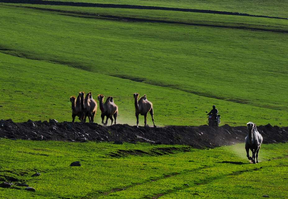6月26日至29日,我又一次来到新疆阿勒泰地区吉木乃县托勒海特夏牧场,如同步入一幅流动的绿色长卷。极目远眺,广袤无垠的草原似柔软绿毯,从脚下向远方肆意铺展。羊群如散落的云朵,或悠然啃食青草,或静卧休憩;骆驼群缓缓踱步,与远处山峦、蓝天、白云相融,绘就雄浑的塞外图景。